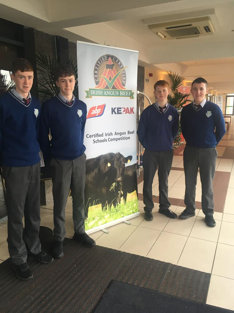 Members of Coolbawn Angus, Conor Joyce, Tom Osborne, Edmond Hyde & Paul O’ Connell attended an interview today in the South Court Hotel, Limerick. This interview was the next stage of the Certified Irish Angus Beef Schools' Competition. Each student had to display their knowledge of the importance of Angus beef, how they have promoted it to date and their future plans to a panel of 6 expert judges. Coolbawn Angus will now wait to hear if they were successful in progressing to the next Stage of the competition which will take place in Croke Park in March.