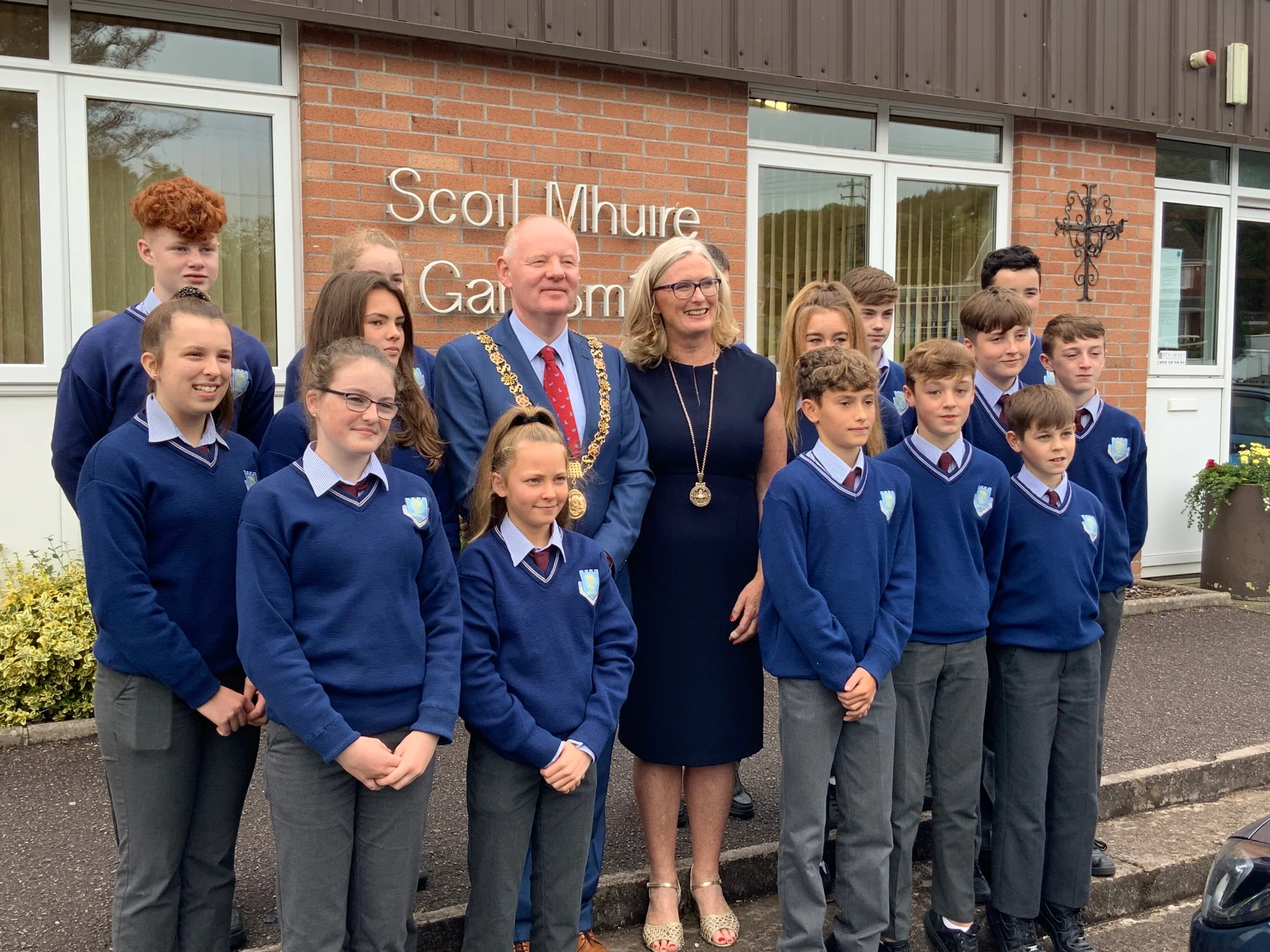 Second year students and staff of SMGS warmly greeted the Lord Mayor Cllr. John Sheehan and his wife the Lady Mayoress Aedamar Sheehan on their visit to the school earlier today.