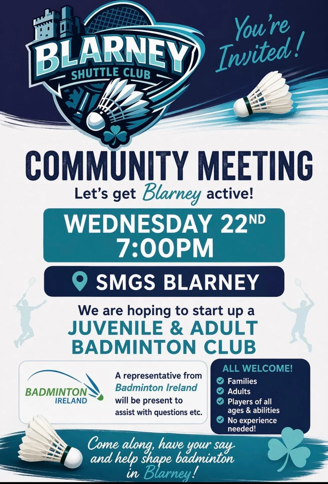 We are hoping to start up a juvenile & adult badminton club.
